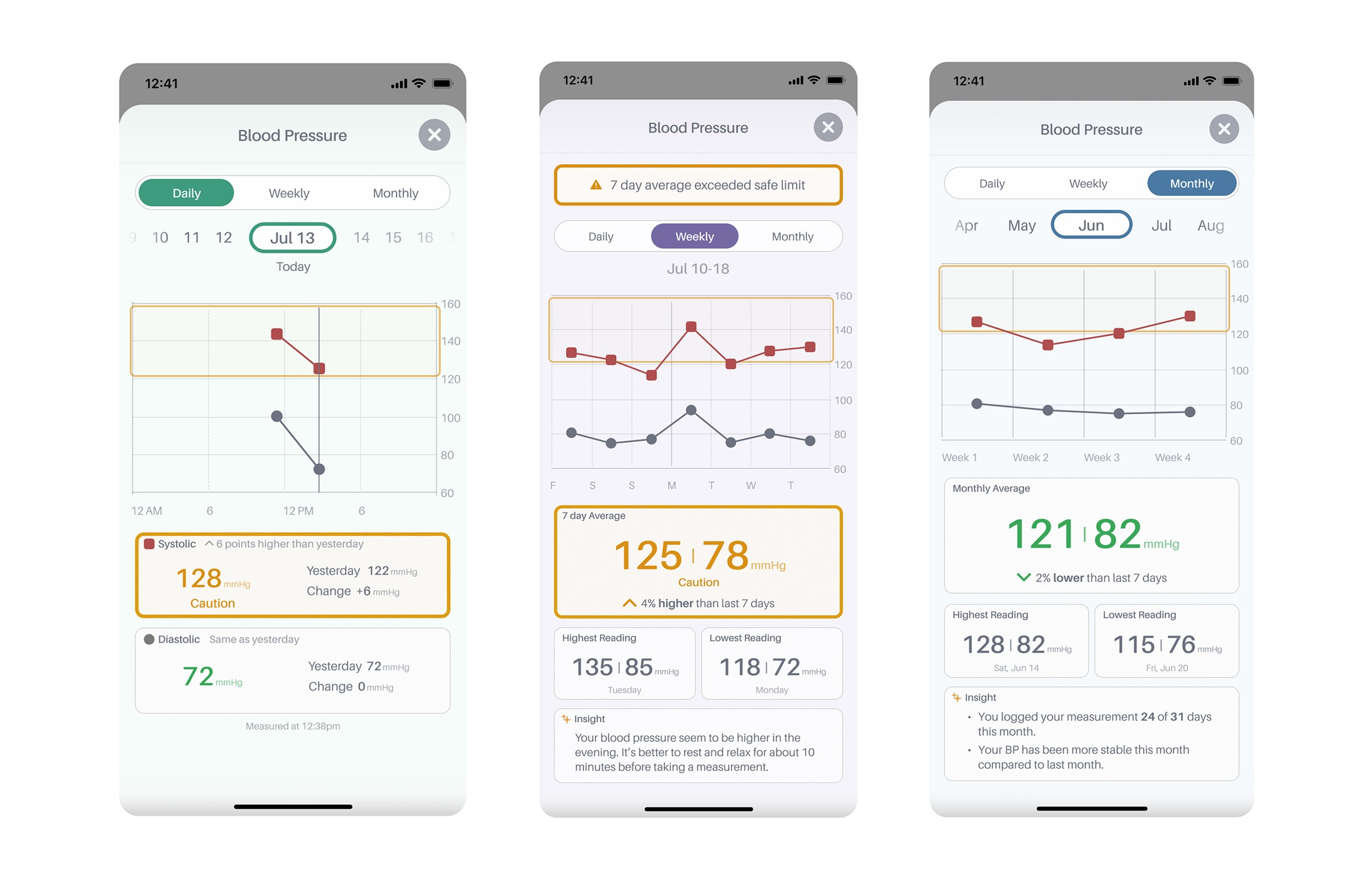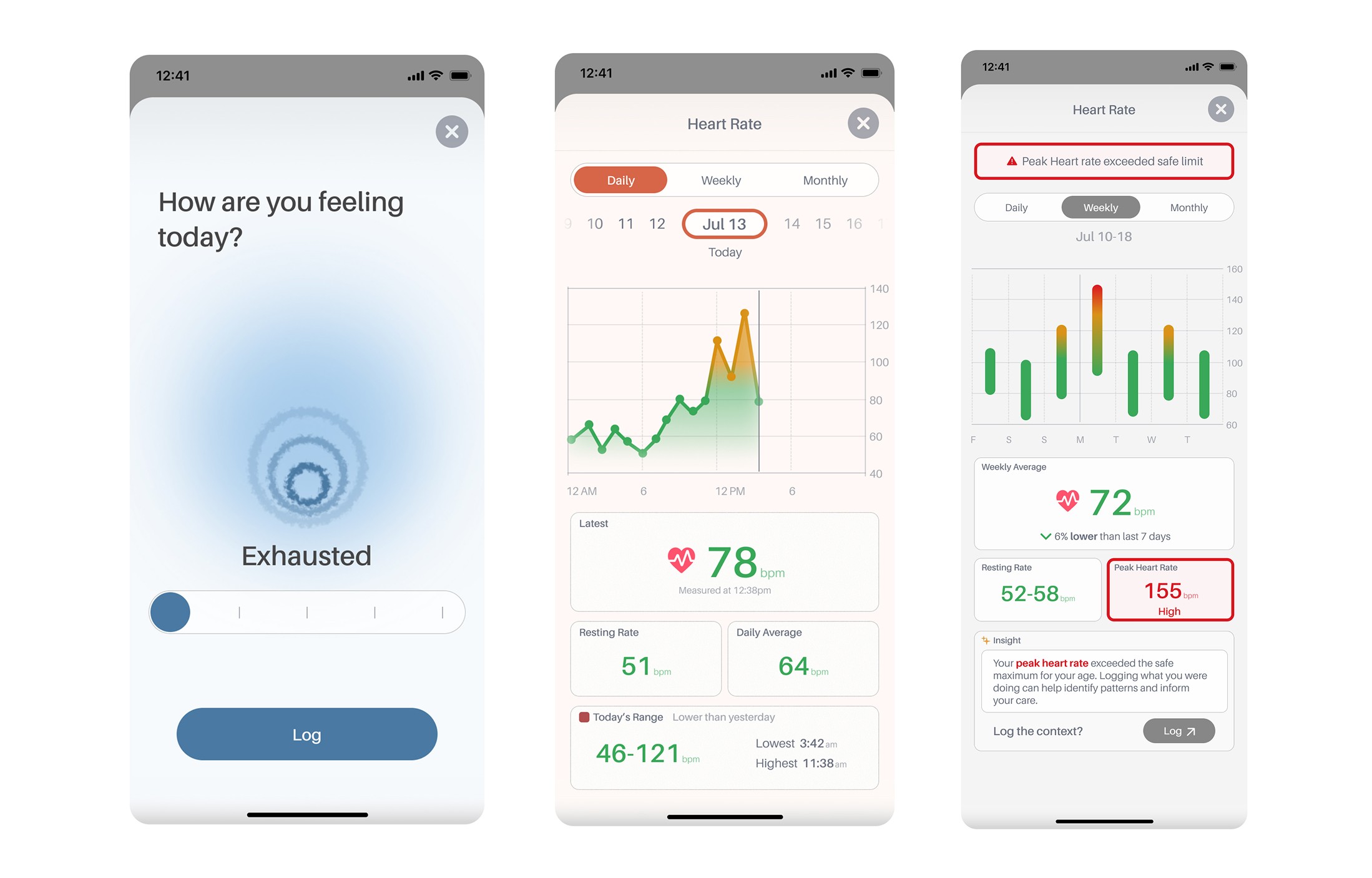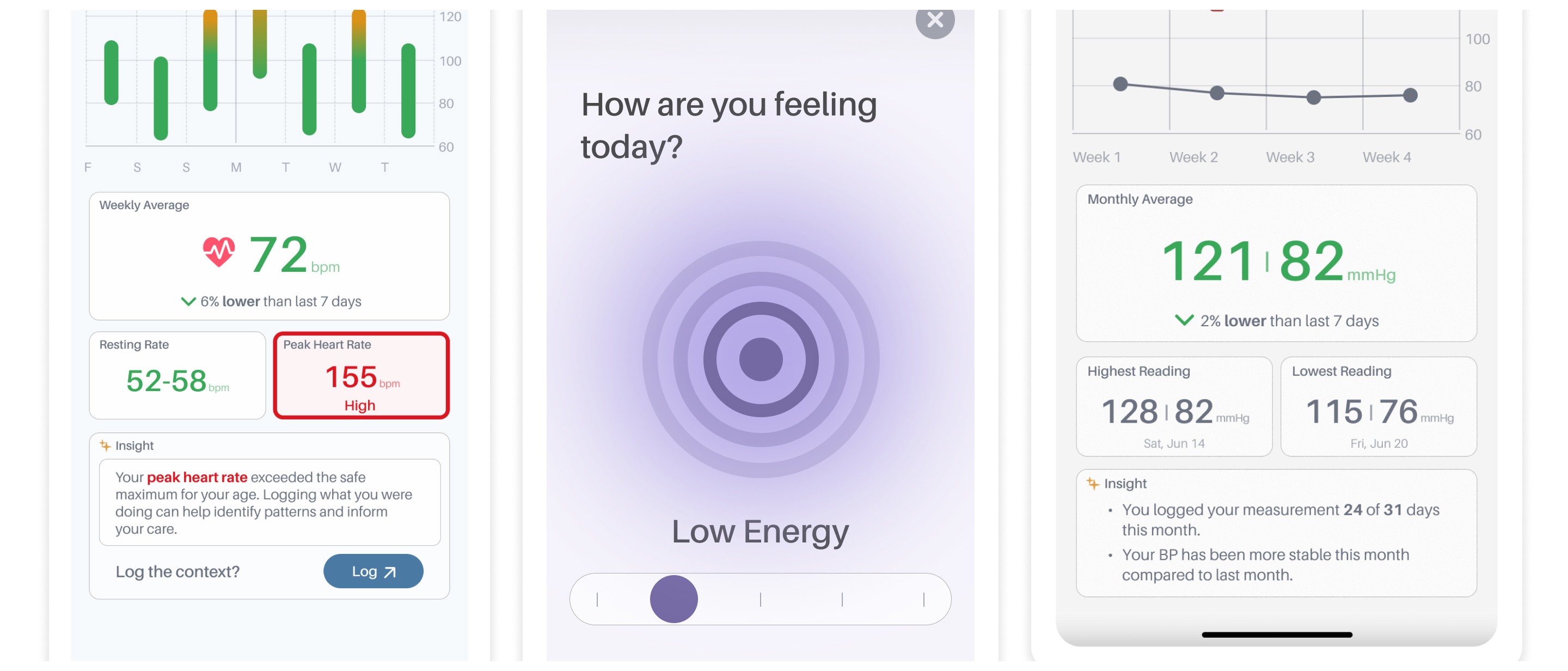 The result is a system that adapts to how someone's feeling (which is also critical to cardiovascular health) while keeping the clinical information clear and actionable, both for patients managing their health day-to-day and for clinical staff triaging cases remotely.