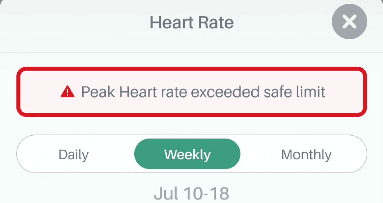 For the data itself, the goal was helping people understand when something actually needed medical attention. Instead of just showing a heart rate graph, the app explains what's happening: "Your peak heart rate occurred during a stressful period and exceeded safe limits." It tells people what the data means and what they should do about it. The alert system only shows status banners when something actually needs attention. Meaning no constant "everything's normal" noise. This helped patients understand when to monitor at home versus when to contact their doctor, which ended up reducing unnecessary clinic visits at the pilot sites.